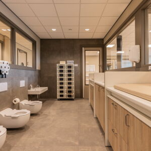 Er zijn vier groepen gehuisvest op de begane grond, zodat de kinderen makkelijk naar buiten kunnen om te spelen en de dieren te ontmoeten. Aan de achterkant van het gebouw komt een speciale ruimte voor de kleine dieren en een overdekte speelplaats.