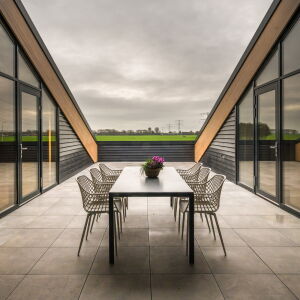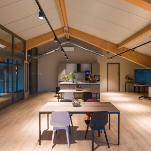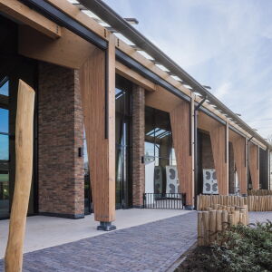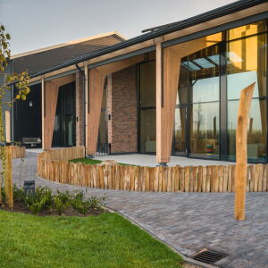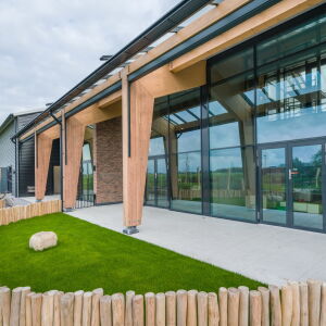 De nieuwe kinderopvang is gebouwd op het erf van de huidige boerderij. Het gebouw kenmerkt zich door een duurzame en natuurlijke benadering, waarbij de hoofddraagconstructie is uitgevoerd in houten spanten. Deze bewuste keuze, ingegeven door de wens naar een ecologisch verantwoord en duurzaam gebouw, sluit naadloos aan bij de landelijke omgeving en onze architectonische visie. De gelamineerde houten spanten vormen niet alleen de basis van het gebouw, maar dragen met hun warme uitstraling ook bij aan een kindvriendelijke en rustieke sfeer. De keuze voor hout, een hernieuwbare grondstof met een lage CO2-voetafdruk, onderstreept het duurzame karakter van het project en de verbondenheid met de agrarische context.